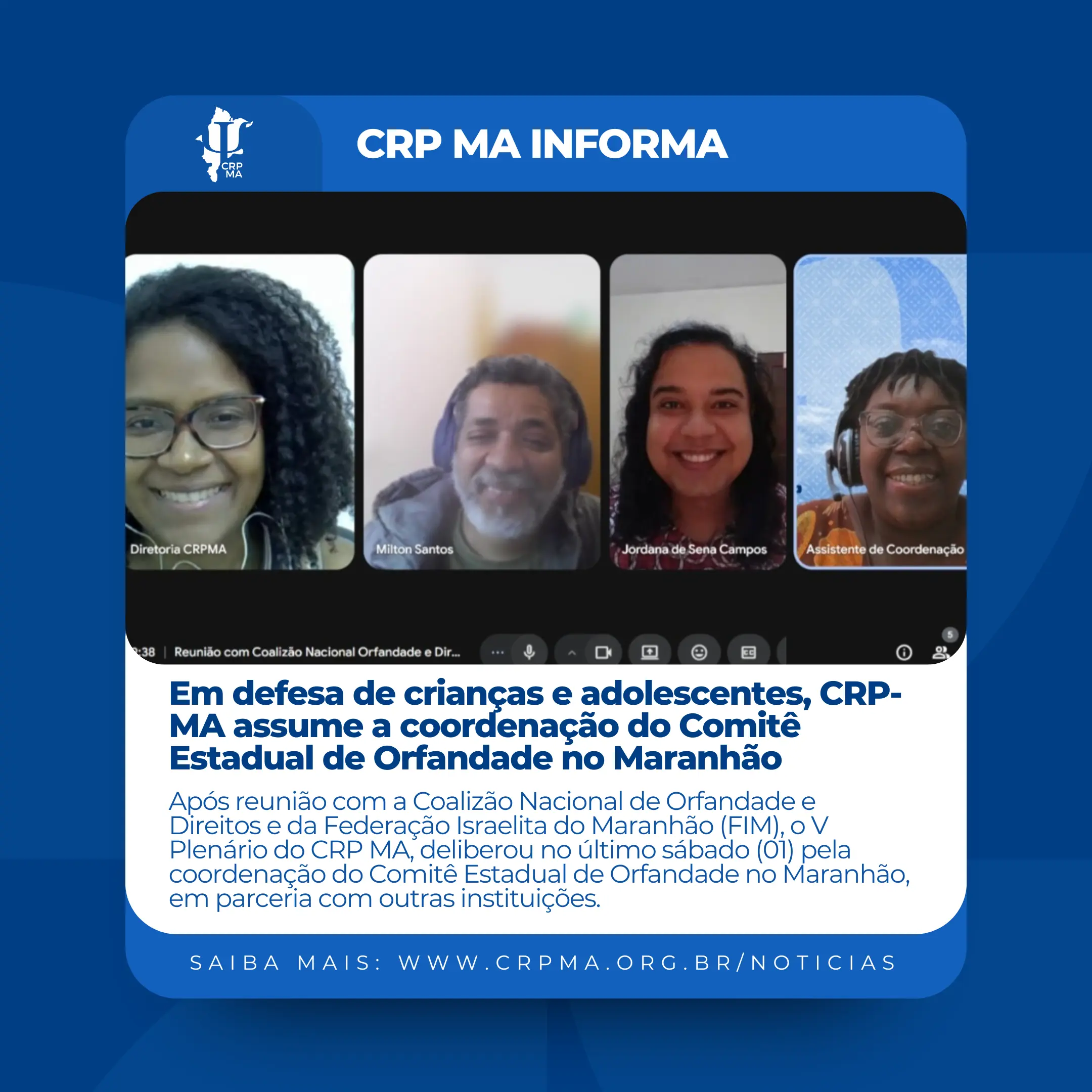 Em defesa de crianças e adolescentes, CRP-MA assume a coordenação do Comitê Estadual de Orfandade no Maranhão