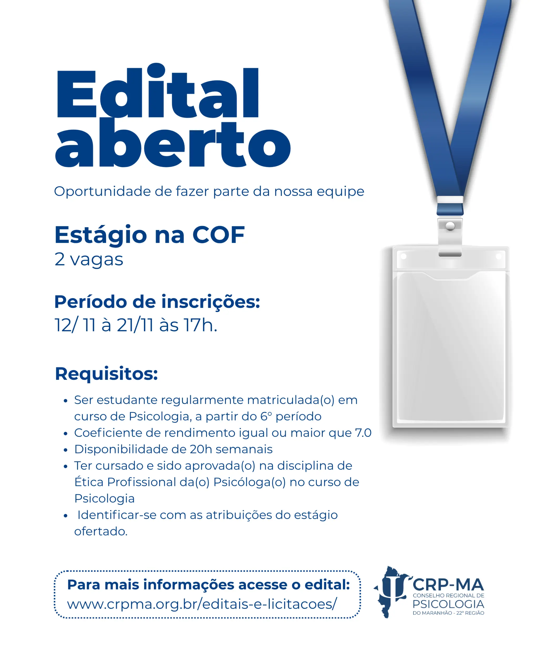 O Conselho Regional de Psicologia do Maranhão (CRP-MA) está com duas vagas abertas de estágio não obrigatório para atuação na...