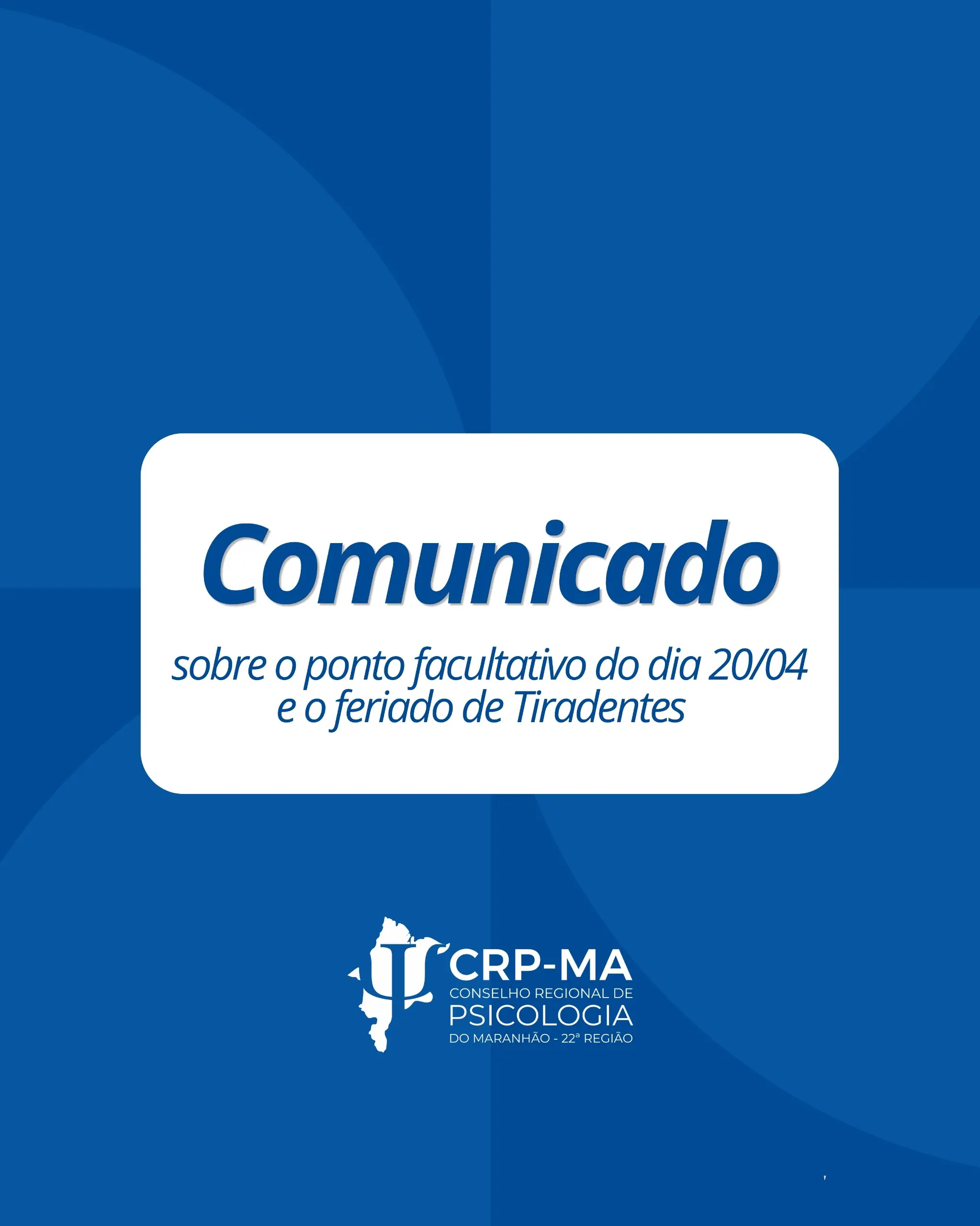 Informamos que, nos dias 20 e 21 de abril (segunda e terça-feira), não haverá expediente nas unidades de São Luís...